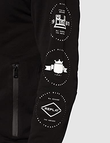 REPLAY M3558 .000.21842 Felpa con Cappuccio, Nero (098 Black), XS Uomo