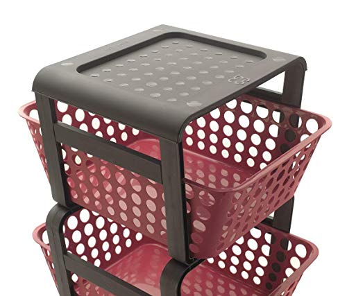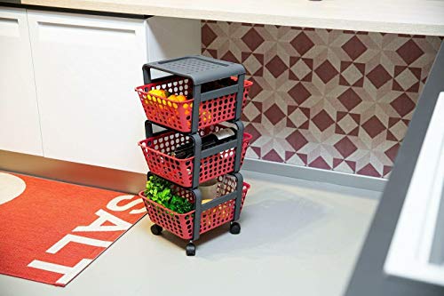 REPLOOD Carrello Modula 3 Scomparti Porta Frutta con Ruote Carrellino da Cucina Porta Oggetti (Rosso Veneziano)