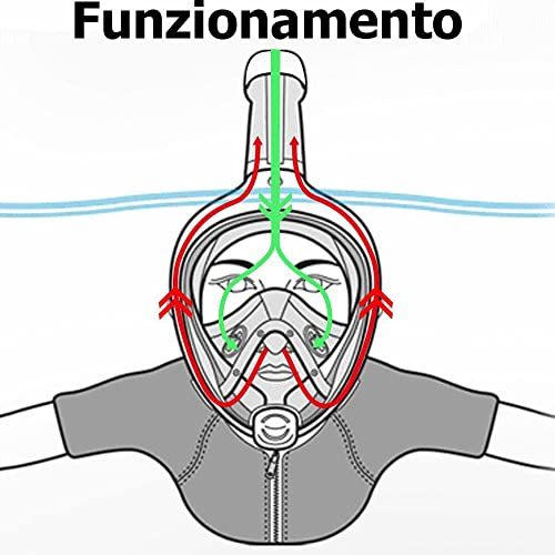 La camera di respirazione è separata dalla maschera, così da dirigere il flusso d'aria lontano dalla zona di visuale, eliminando così l'appannamento e permettendo di trascorrere più tempo sottacqua.