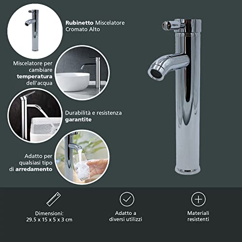 REPLOOD Rubinetto Miscelatore 30cm Lavello Bagno Lavabo Cromato Alto Ottone Cromato Fontana Lavabo a Gambo Lungo Cromo Lucido