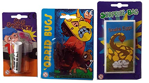 Scegli la tua vittima: i semplici piaceri di vedere quel viso inorridito o sentire che urlano terribile... Altrettanto esilarante e volgare, questi trucchi sono molto facili da giocare su qualsiasi povera, vittima sfortunata prende la vostra fantasia. Questa scatola include 8 battute classiche: adesivo per finestra incrinato, gomma per schioccare, dita per unghie, graffi per auto, sacchetto per uova a sorpresa, mano Spannolino, cuscino Whoopee, ragni raccapriccianti, set di 3 denti da vampiro e Orrid Box ugs.