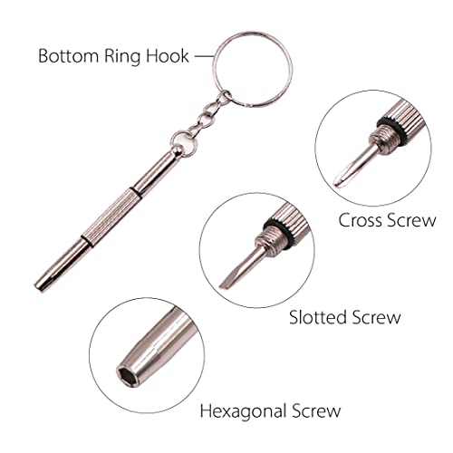 REQAG 4 Pezzi 3 in 1 Cacciavite per Occhiali Kit di riparazione Cacciavite da Tasca a Doppia Punta Mini Multifunzione Cacciavite per Occhiali, Sole, Orologi, Gioielleria