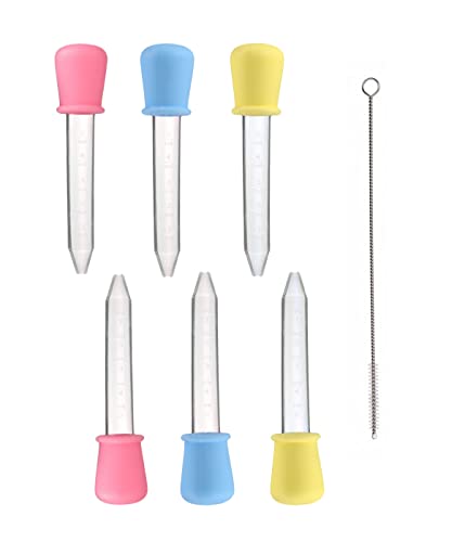 REQAG 6 Pezzi Pipette Contagocce Plastica Pipetta Dropper in Silicone con Spazzola Pulita Dispenser Liquido Dropper Trasferimento per Caramelle Gommose, Animali Domestici, Piante,5ml