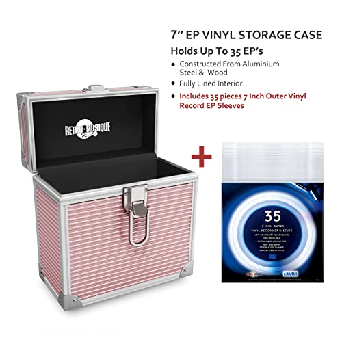 Rereo Musique Custodia in alluminio da 7" vinile Record EP Contiene fino a 35 EP Include 35 maniche esterne vinile Record (Oro rosa)