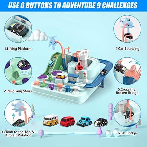 【Nessuna necessità di batteria】 I giocattoli da pista per auto non necessitano di batteria e funzionano comodamente. Ci sono 6 pulsanti per controllare e superare 9 diverse sfide. Non devi preoccuparti che i bambini perdano la partita, cercheranno di trovare una via d'uscita. I genitori possono anche giocare insieme e condividere ore di divertimento.