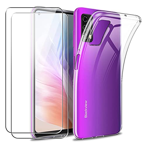 Reshias Cover per Blackview A90, Trasparente Morbido TPU Silicone Protettiva Custodia con Due [9H Durezza] Vetro Temperato Pellicola Protettiva per Blackview A90 6.39''
