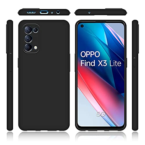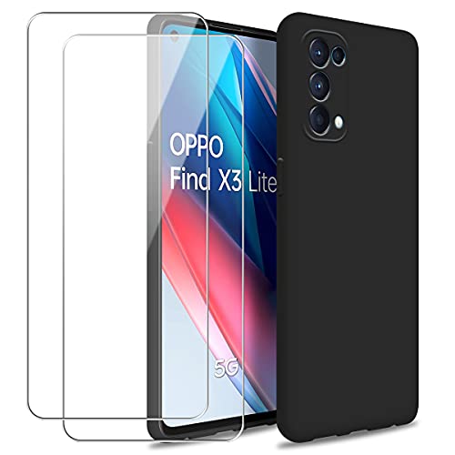 Reshias Cover per Oppo Find X3 Lite, Nero Morbido Liquido Silicone Protettiva Custodia con Due [9H Durezza] Vetro Temperato Pellicola Protettiva per Oppo Find X3 Lite 5G 6.43''