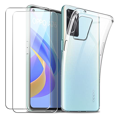 Reshias Cover per Oppo A76 / A96 / A36, Morbido Trasparente TPU Protettiva Custodia con Due [9H Durezza] Vetro Temperato Pellicola Protettiva per Oppo A76 6.56''