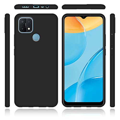 Reshias Cover per Oppo A15, Nero Morbido Silicone Liquido Protettiva Custodia con Due [9H Durezza] Vetro Temperato Pellicola Protettiva per Oppo A15 6.52"