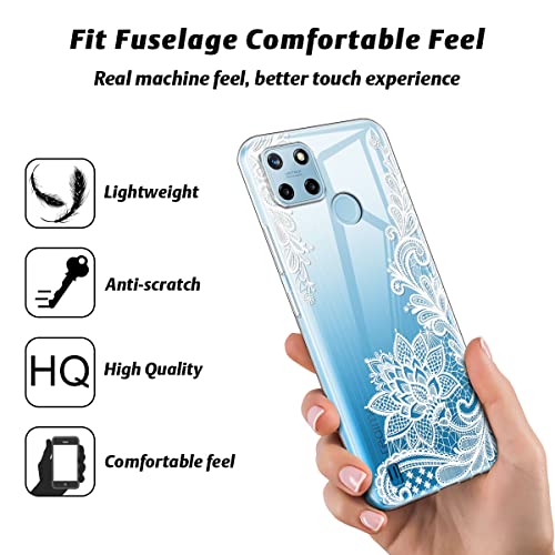 Reshias Cover per Realme C25Y, Fleur Blanche Morbido TPU Protettiva Custodia con Due [9H Durezza] Vetro Temperato Pellicola Protettiva per Realme C25Y / C21Y 6.5''