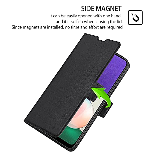 [Magnetic and Kickstand Feature] - La cover a portafoglio per Samsung Galaxy A22 5G può essere chiusa da una chiusura magnetica,inoltre può essere utilizzata come cavalletto,è molto comodo guardare moive o video.