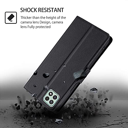 [Materiale: Pelle PU,silicone TPU morbido e vetro temperato] - L'esterno della custodia è realizzato in pelle PU,ha una sensazione tattile molto confortevole e il supporto interno è realizzato in morbido TPU.Inoltre,la pellicola protettiva per Samsung Galaxy A22 5G è realizzata in vetro temperato.