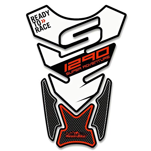 Resin Bike Adesivi Moto Compatibile con KTM 1290 Super Adventure S 2017 2018. Protezione Paraserbatoio da Urti e Graffi. Adesivo 3D Resinato 3D - Bianco e Arancio