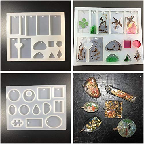 Resina epossidica UV trasparente Kit da 210ml 15 Stampi in silicone 15 Shimmer Pigment 12 Glitter 9 Open Back Bezels + Traceless Tape for Crafts Pendenti con gioielli Orecchini Making
