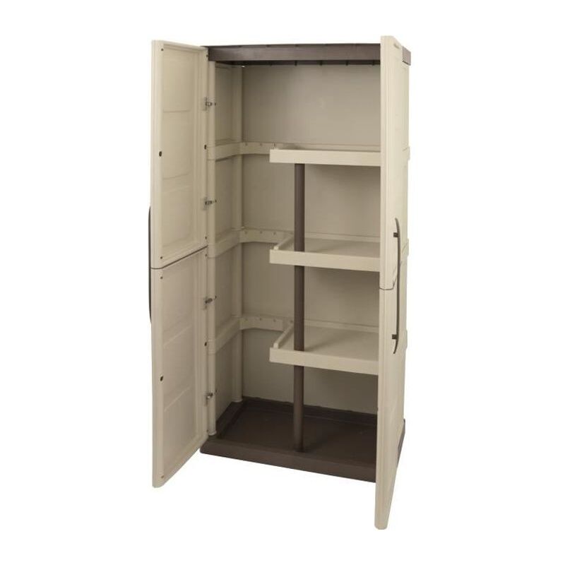 Alto armadietto di immagazzinaggio 3 ripiani più portaspazzole con due porte - Materiale: resina - Colore: Talpa / ecru - Carico massimo per compressa: 20 kg - Nel complesso Carico massimo: 60 kg - Dimensioni del mobile montato (LxWxH): 70x39x165 cm - consegnato smontato.