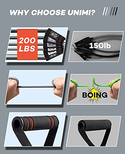 Resistance Bands, 14 in 1, set di fasce elastiche per fitness, fino a 200 kg, per terreno, combinabili, set di fasce di resistenza con manici larghi e corda per saltare, fasce per allenamento