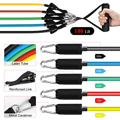 Resistance Bands Widerstandsband Set,5 Fitnessband Expander Tubes Bänder mit Griffe, Türanker und Fußschlaufen für Krafttraining,Ganz-Körper-Workout,Muskelaufbau,Yoga,Home Gym (600)