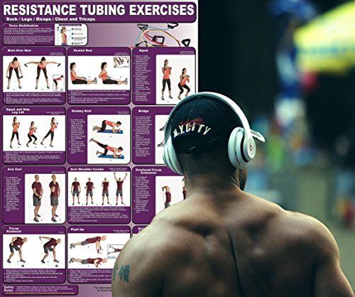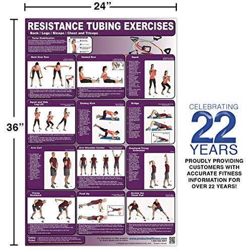 Resistance Tubing Exercises Poster/Chart -Back/Legs/Biceps/Chest & Triceps Laminated;