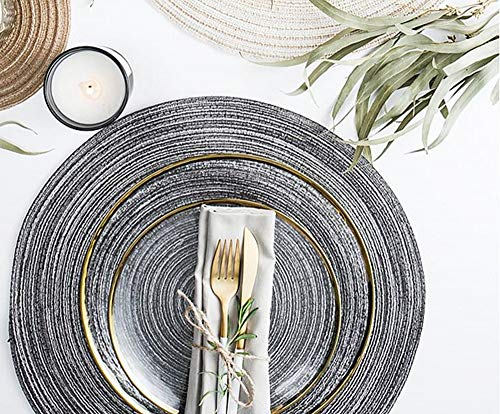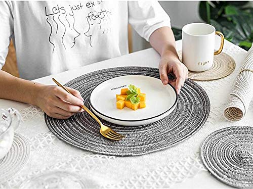 JZK Set 8 Resistente al Calore rustiche tovagliette e sottobicchieri, 4 sottopiatti tovagliette Rotonde Grigio 36cm e 4 sottobicchieri 18cm