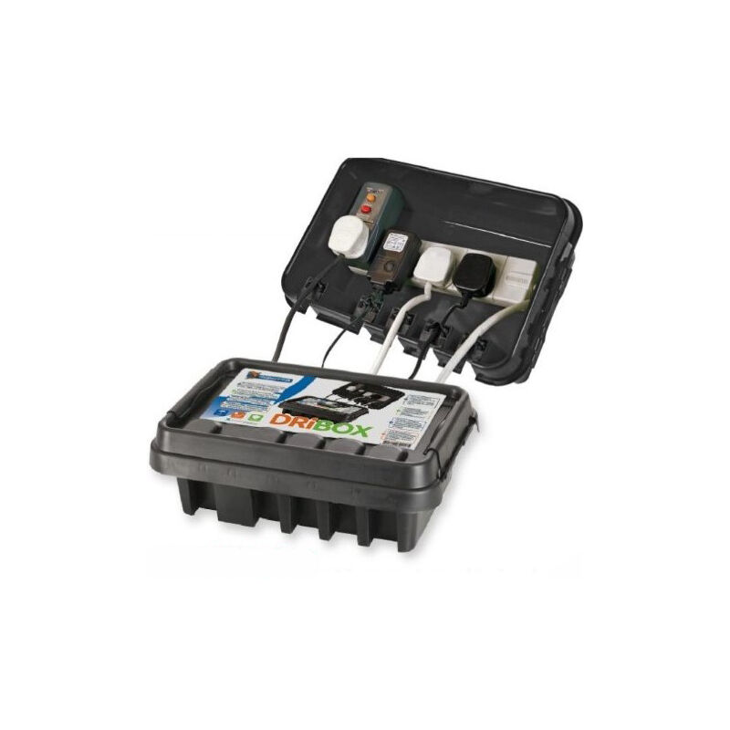 SuperFish DriBox Scatola di collegamento per cavi elettrici resistente agli agenti atmosferici (IP55) per l'uso sicuro di prese multiple, prolunghe e timer esterni in giardino. Questa pratica scatola resistente ai raggi UV è dotata di 5 passacavi con guarnizione in silicone, per cui l'acqua non può penetrare lungo i cavi. Offre spazio sufficiente per prese multiple, ecc. (28,5 x 15 x 11 cm). Dimensioni esterne Box: 33,5 x 24 x 13 cm.