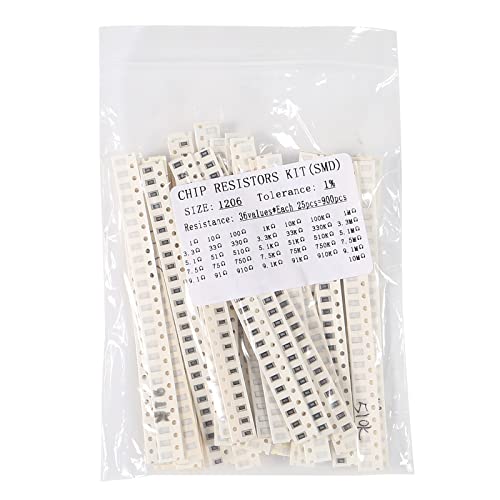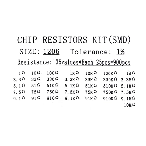 Il kit di resistori 1206 smd è un set di 900 resistenze professionali e pratiche a chip con la precisione dell'1%, sono composti da 36 valori da 1 a 10 m R, ciascuno 25 pezzi.
