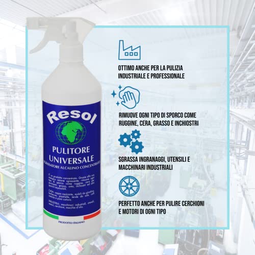 RESOL Pulitore Universale 1L - Sgrassatore professionale - Spray multisuperficie e Sgrassatore - Sgrassatore super potente per pulizia della casa - Sgrassatore disinfettante - (6 Unità x 1 L)