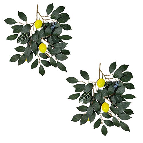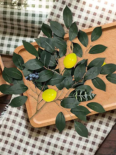 RESOYE - Ramo di limone, finto ramo di limone con foglie verdi, giallo falso piccole decorazioni di limoni simulazione di rami di frutta per cucina, casa, giardino, 15 cm