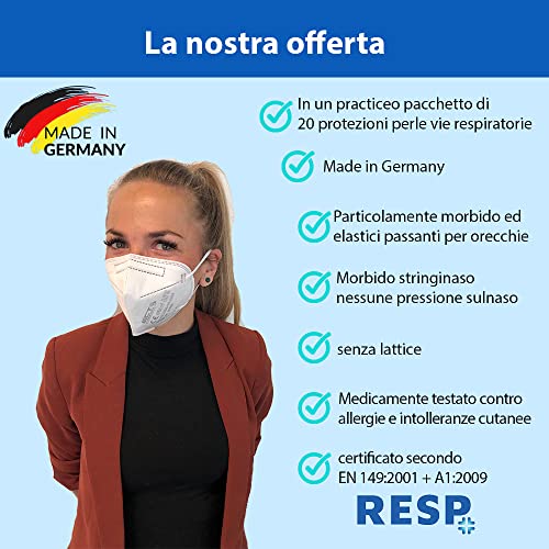RESP Maschere FFP2 dalla Germania - Maschera FFP2 (NR) MADE IN GERMANY - Maschere mediche FFP2 - Respiratore premium FFP2 (4x Confezione da 5)