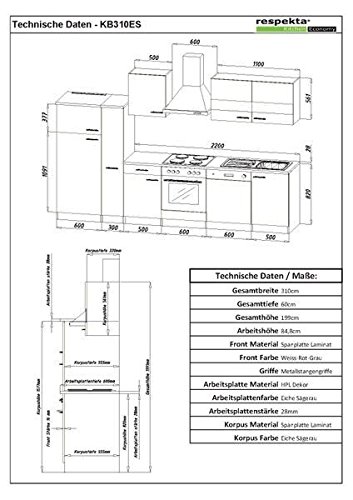 Respekta Merle Linea Vuota da Cucina, Legno ingegnerizzato, Schwarz, 310 cm