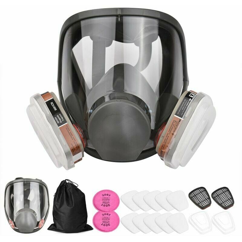 Kit 18 in 1: 1 maschera intera, 2 filtri rotondi in cotone 2091, 2 scatole filtro, 2 coperture in plastica, 10 filtri in cotone, 1 custodia. Blocca efficacemente una varietà di sostanze nocive, particelle di polvere e gas irritanti. Respiratore a pieno facciale morbido e leggero con un archetto facile da regolare per una vestibilità personalizzata.La guarnizione in silicone offre la massima protezione Vestibilità confortevole. Viene fornito con una custodia in tessuto per un facile trasporto e stoccaggio. Adatto per lavorazioni chimiche, muratura, levigatura, segatura, saldatura, costruzione, verniciatura, pulizia ecc. > 'Specifiche: Materiale: silicone n. 43;