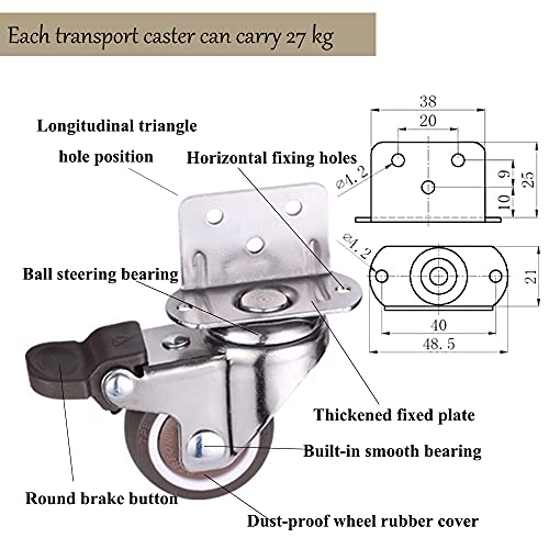 Resszo Rotelle per Mobili Pesanti 50MM, 4 Pcs Ruote per Carrello Ruote Girevoli con Freno, Piastra di Montaggio a L, per Supporti Fiori e Culle