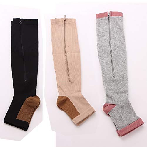 RESTBUY Calze a Compressione Calze Elastico con Cerniera, 3Pairs XXL
