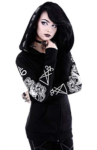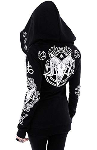 RESTYLE Occult RAM Skull Pentacle Nugoth Punk Goth Ritual Witchcraft Hoodie Top (3XL - UK 18) Black