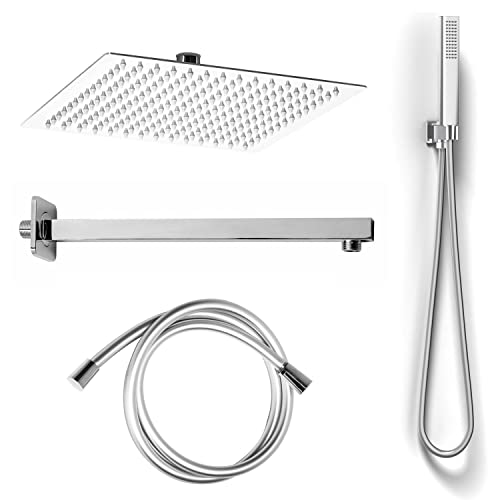 MULTIFUNZIONE: Set doccia composto da: 1 soffione quadrato, 1 braccio doccia squadrato 35,5 cm, 1 doccetta monogetto con supporto a muro squadrato e flessibile in pvc. Prodotto Top Quality