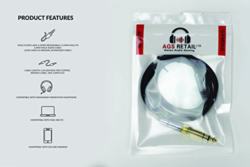 AGS Retail Ltd 1.2m NEW Replacement Audio upgrade Cable compatible with Sennheiser Momentum over-Ear On-Ear Headphone - GOLD PLATED