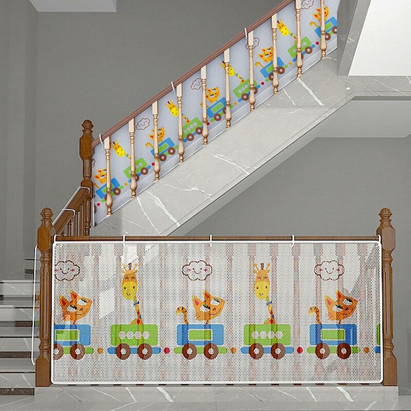Materiale durevole di alta qualità: la rete di sicurezza è realizzata in tessuto robusto di alta qualità che resiste a strappi e strappi, protegge la sicurezza del bambino. Nota: NON USARE COME PORTA DI SICUREZZA. Questa rete di binari in rete NON è destinata a sostenere il peso corporeo. Design conveniente: il diametro della maglia della rete di binari è di 0,5 cm, sicuro per i bambini, lavorazione ordinata. Design del foro a nido d'ape, non ostruirà la tua visuale. Ampiamente usato: l'installazione di questa rete per ringhiera sul corrimano può impedire ai bambini di attaccare la testa e il corpo attraverso le ringhiere, evitare che giocattoli e scarpe cadano lo spazio tra le barre del corrimano. Può anche essere usato come cancello di sicurezza per animali domestici! Questa resistente rete di sicurezza offre un ambiente di gioco sicuro per i bambini su ringhiere, scale, culle, corridoi, balconi, ecc. Installazione flessibile: usa gli anelli di sospensione in plastica che passano