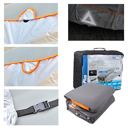 Rete antigrandine di protezione, XXL, di classe superiore e SUV, adatta all'inverno, dimensioni di 570 x 178 x 119 cm. Colore argento con elastico e disco orario incluso