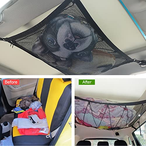 Salvaspazio: portaoggetti da soffitto, design a rete, ripiano superiore, aumentano lo spazio in auto. La capacità è aumentata, gli oggetti sono stabili e non cadono ed è facile da trasportare. Può essere utilizzato per riporre vestiti, coperte, peluche, documenti, snack e molto altro ancora.