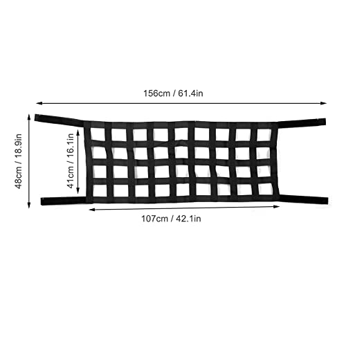 La rete portaoggetti sul soffitto dell'auto è 42x16 pollici, è adatta per auto, Jeep, SUV e così via. Ideale per viaggi a lunga distanza e campeggio in auto.
