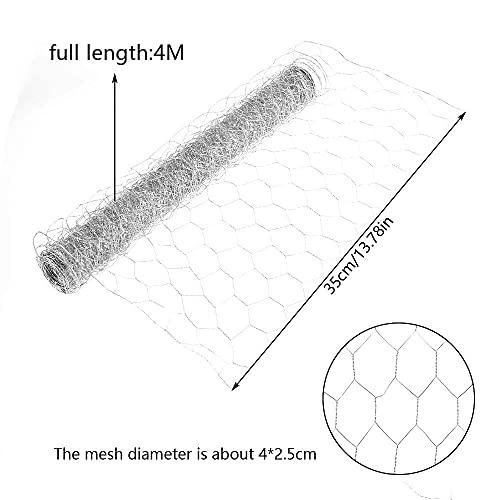 MATERIALE E DIMENSIONI:Materiale: filo metallico.la rete di filo esagonale galvanizzata misura 35 cm * 4 m che è un'ottima scelta per i progetti artigianali ed è più facile da tagliare e modellare, il diametro di apertura della rete di filo esagonale è di circa 4*2.5 cm .