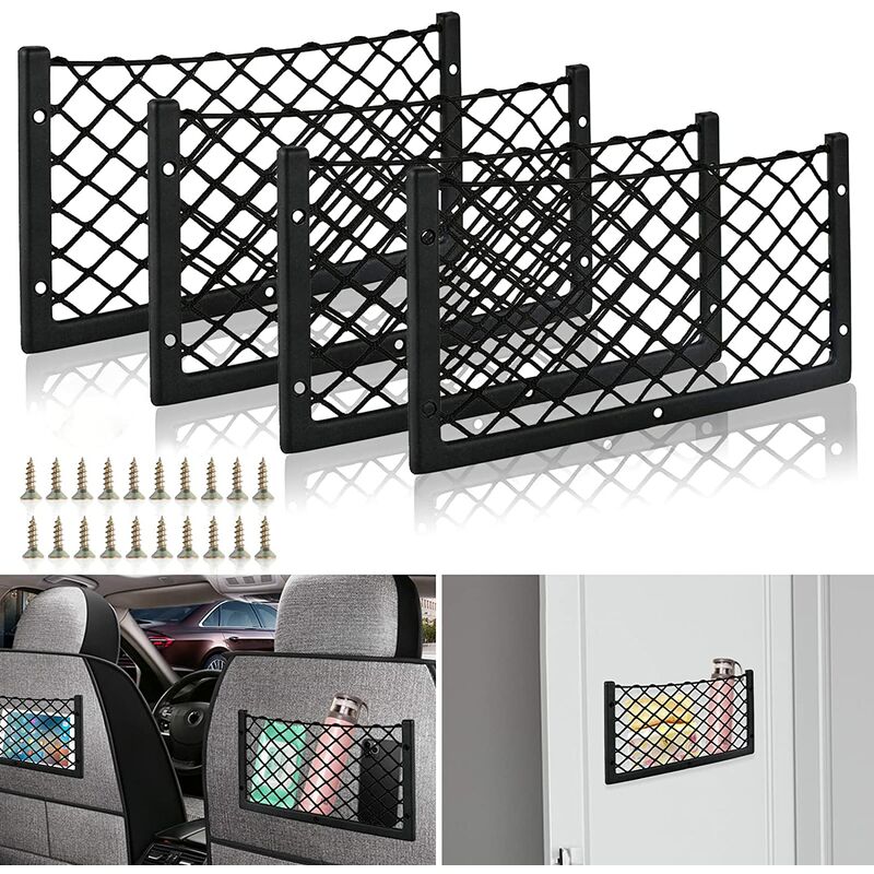 Ausili per il rimessaggio dell'auto: 4 pezzi di bauletto in rete, 20 viti incluse. Con questa borsa a rete, puoi organizzare e ordinare cose in macchina come generi alimentari, bottiglie, spray per la pulizia, panni per la pulizia, biglietti, ecc., rendendo la tua auto più pulita e ordinata. /p> Materiale di alta qualità: Queste reti per bagagliaio sono realizzate in nylon e plastica di alta qualità. Solido e resistente, forte elasticità e non facile da danneggiare. Puoi utilizzare e riutilizzare la rete portaoggetti per auto per molto tempo. Non è facile cadere: Il rinforzo del chiodo rende la tua rete portaoggetti più solida e la capacità portante è più forte. Il telaio ha fori per 5 viti e può essere fissato alla maggior parte delle superfici piane. Risparmio di spazio: Queste tasche in rete per seggiolino auto sono molto comode per te, puoi usarle per organizzare molte cose nella tua auto, il che può farti risparmiare più spazio, specialmente quando viaggi in auto, queste reti