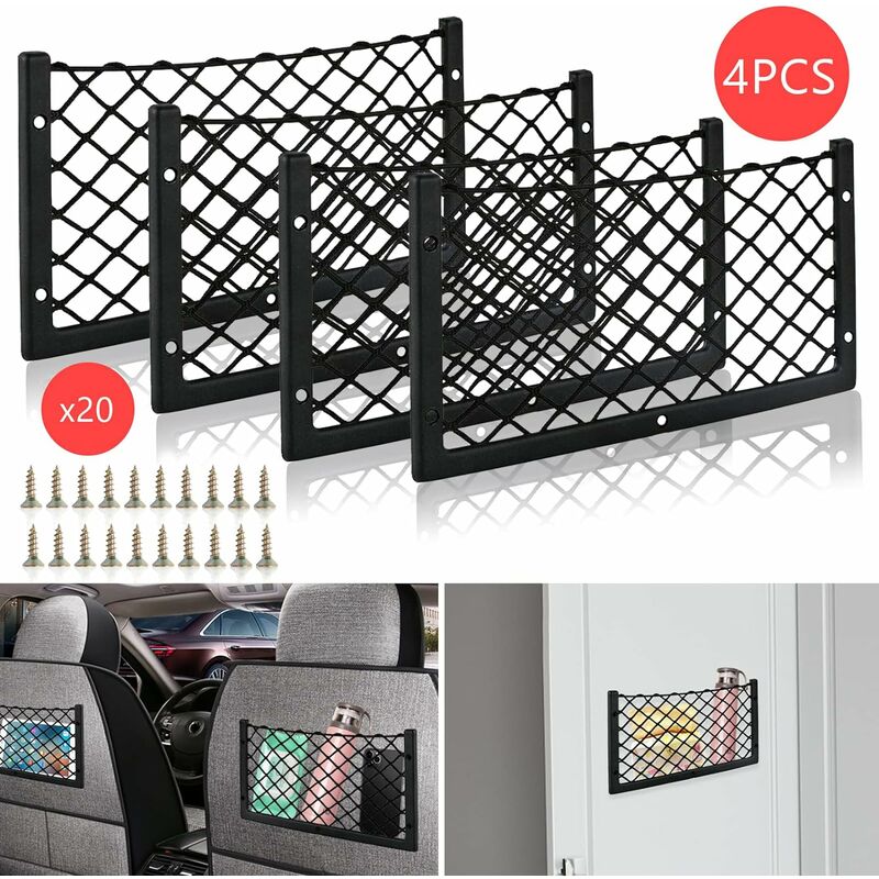 Ausili per lo stoccaggio dell'auto: 4 pezzi di borsa per bagagliaio in rete, 20 viti incluse. Con questa borsa a rete, puoi organizzare e ordinare cose nell'auto come generi alimentari, bottiglie, spray per la pulizia, panni per la pulizia, biglietti, ecc., rendendo la tua auto più pulita e ordinata. /li> ★ Materiale di alta qualità: Queste reti per tronchi sono realizzate in nylon e plastica di alta qualità. Solido e durevole, forte elasticità e non facile da danneggiare. Puoi utilizzare e riutilizzare a lungo la rete portaoggetti per auto. ★ Non è facile cadere: il rinforzo dei chiodi rende la rete portaoggetti più solida e la capacità portante è maggiore. Il telaio ha fori per 5 viti e può essere fissato alla maggior parte delle superfici piane. ★ Risparmio di spazio: queste tasche a rete per seggiolino auto sono molto comode per te, puoi usarle per organizzare molte cose nella tua auto, che può farti risparmiare più spazio, specialmente quando viaggi in auto, questi scaffali