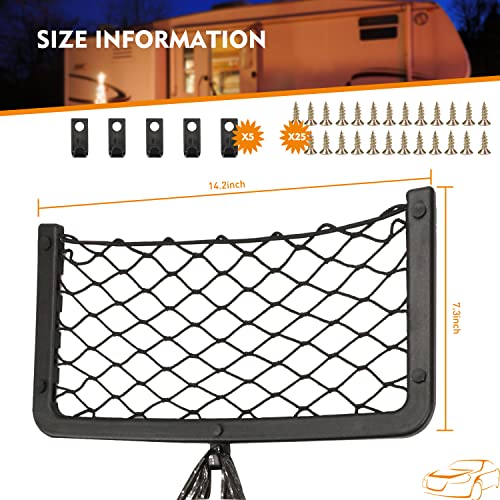 Rete per Portaoggetti Camper 5 PCS,Organizer Rete Bagagliaio Auto 36*18cm,Multifunzionale Accessori Rete Borsa per Auto Sedile Groceries per Utensili Camper,Barche (con Viti,Coperchio a Vite,Gancio)