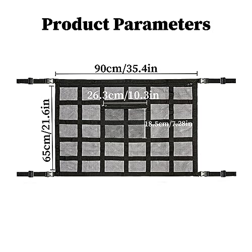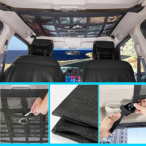 Rete da Portaoggetti Tasca Auto Soffitto, 90cm x 65cm Universale Regolabile in Rete Organizer da Carico per Soffitto Auto Interni per Van SUV, Doppio Strato Riporre i Giocattoli e i Vestiti