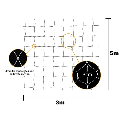 Rete Protettiva Trasparente, può Essere Tagliata e Resistente ai morsi, Rete da Balcone per Gatti, per la Protezione di terrazze, finestre e Porte, Balcone Senza Foratura(5x3m)