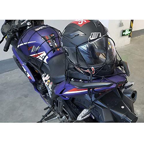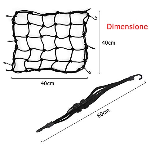 2pz Rete Ragno Elastica + 1pz Corda Elastica Moto Accessori per Moto Rete Portapacchi Ragnatela Moto Rete Portacasco Portapacchi Portabagagli con Guanci Nero
