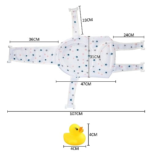 【Design speciale】 La rete da bagno per bambini dispone di un design robusto e cinghie di fissaggio regolabili per garantire che il bambino rimanga stabile nella vasca da bagno e si può fare il bagno più facilmente.