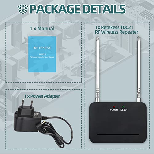 Retekess TD021 Ripetitore Wireless RF, Amplificatore di Segnale Wireless, 1000m, Alta Compatibilità, Range Extender per Pulsante di Chiamata 433MHz