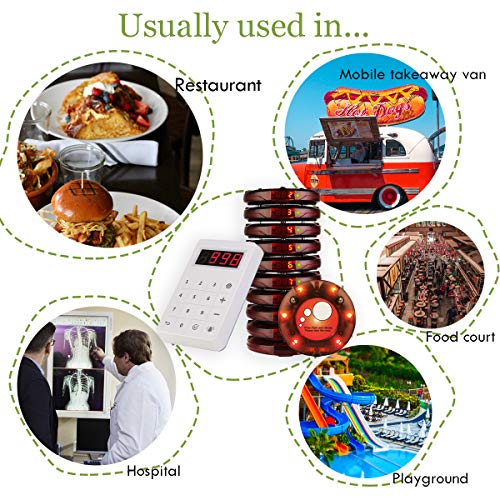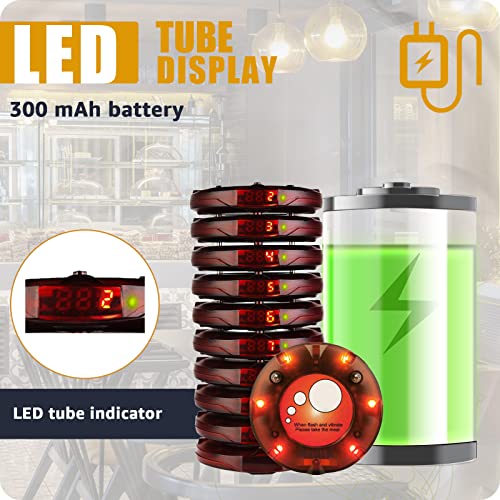 Retekess TD158 Cercapersone Ristorante Wireless, 500M Pager Ristorante, Tubo Numerico a LED, 998 Canali, Cercapersone per Ristorante, Hotel, Scuola (1 Host di Trasmittente + 10 Cercapersone)