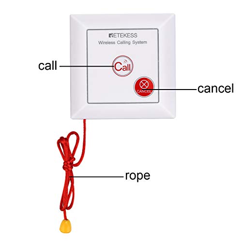 Retekess TH103 Sistema di Allarme, Suono e Luce del Sistema di Chiamata, IP54 Impermeabile Pulsante Chiamata Con SOS Corda di Tirare per Paziente Anziano, Personale Casa (1 Pulsante + 1 Ricevitore)